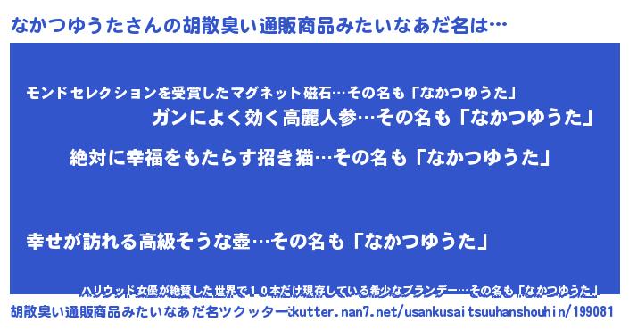 | 意味不明あだ名 | 『永久保存なかつゆうた』 |