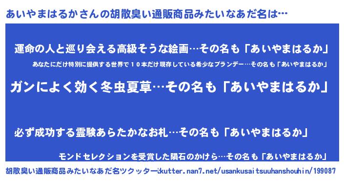 | 意味不明あだ名 | 『自称あいやまはるか』 |
