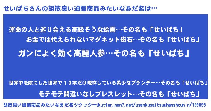 | 意味不明あだ名 | 『自称せいばち』『めかぶ科せいばち属』 |