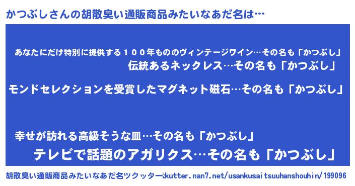 | 男性向けラノベタイトル風あだ名 | 『ノーゲーム・ノーカツブシ』 |