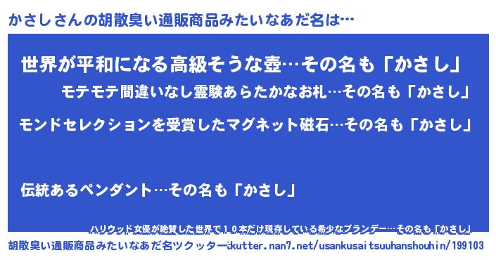 | 2回繰り返すあだ名 | 『ぼろぼろ』『かかささ』『かさかさ』 |