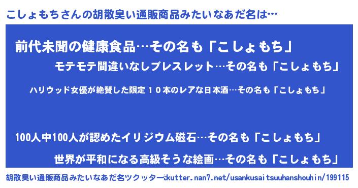 | 意味不明あだ名 | 『住所不定無職こしょもち(56歳)』 |