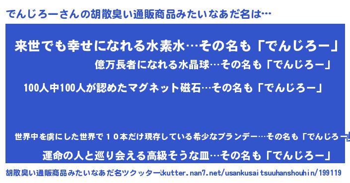 | ヘコむあだ名 | 『でんじろー(笑)』『なまこ酢』 |