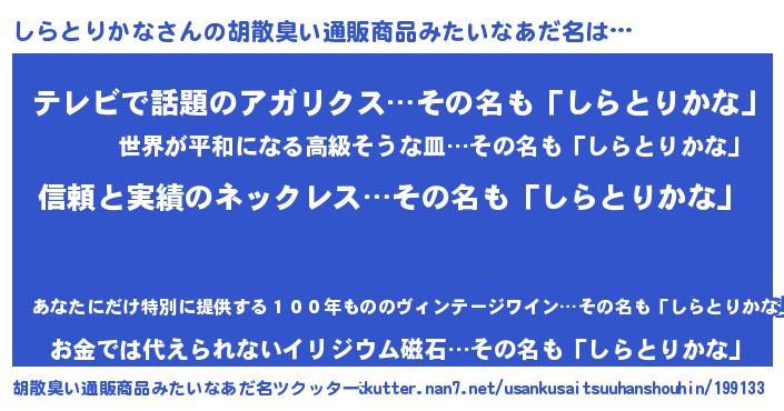 | 意味不明あだ名 | 『とにかく怪しいしらとりかな』 |