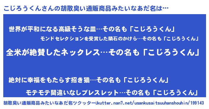 | 意味不明あだ名 | 『とにかく怪しいこじろうくん』 |