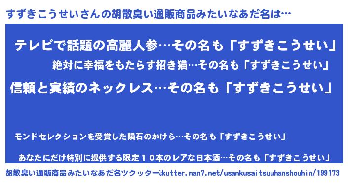 | ヘコむあだ名 | 『すずっ子』『すずきこうせい(震え声)』 |