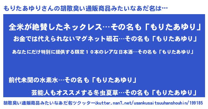 | 男性向けラノベタイトル風あだ名 | 『この素晴らしい世界にもりたあゆりを!』 |