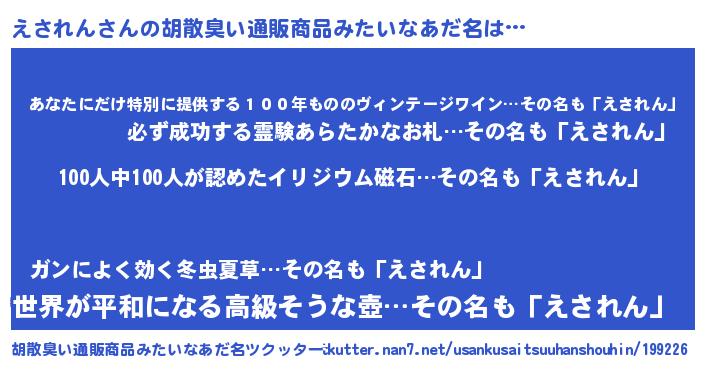 | ヒーロー風カッコイイあだ名 | 『正義の使者えされん』『仮面エサダー』 |