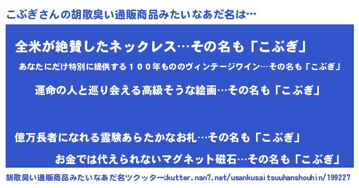 | ヒーロー風カッコイイあだ名 | 『ウルトラこぶぎマン』『幻影騎士コブ』 |
