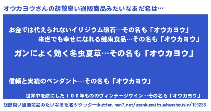 | ヘコむあだ名 | 『オウカヨウ(震え声)』『オウ太郎』 |
