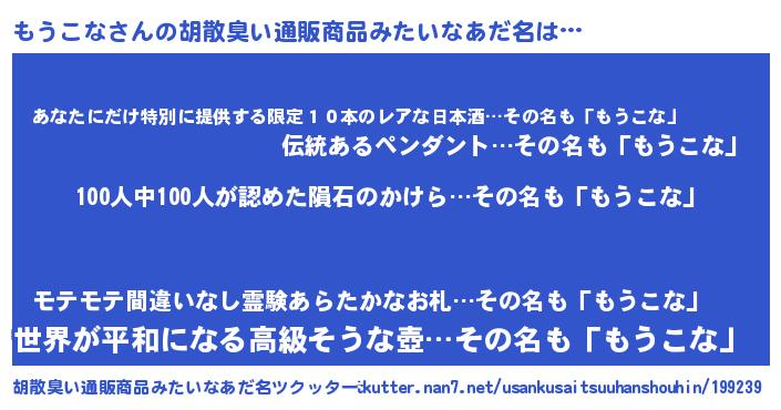 | 欧米人風あだ名 | 『ダニエルもうこな』『ウサインもうこな』 |