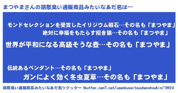 まつやまさんの胡散臭い通販商品みたいなあだ名をツクッター!
