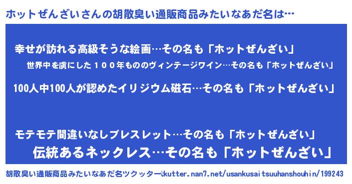 | 欧米人風あだ名 | 『ダニエルホットぜんざい』 |
