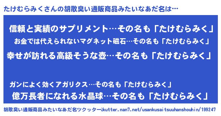 | 欧米人風あだ名 | 『トリンドルたけむらみく』 |