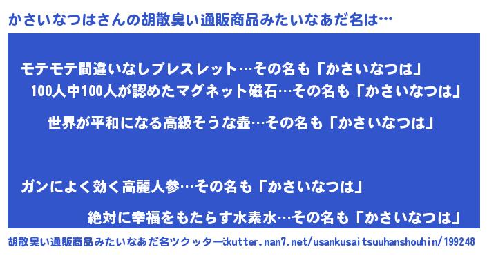 | 肩書あだ名 | 『かさいなつは中尉』『かさいなつは社長』 |