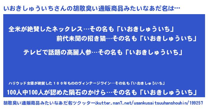 | 意味不明あだ名 | 『自称いおきしゅういち』 |