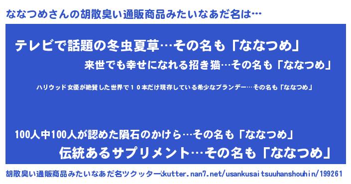 | ヒーロー風カッコイイあだ名 | 『仮面ナナダー』『サイバー戦士ナナツメ』 |