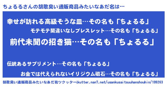 | ヘコむあだ名 | 『ちょるる(笑)』『つくし』『ちょを』 |