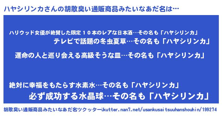 | 欧米人風あだ名 | 『ハヤシリンカクリステル』 |