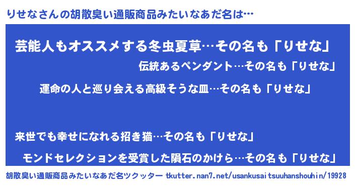 | 肩書あだ名 | 『りせなプロデューサー』『りせな中将』 |