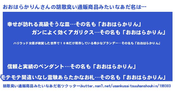 | 意味不明あだ名 | 『住所不定無職おおはらかりん(74歳)』 |