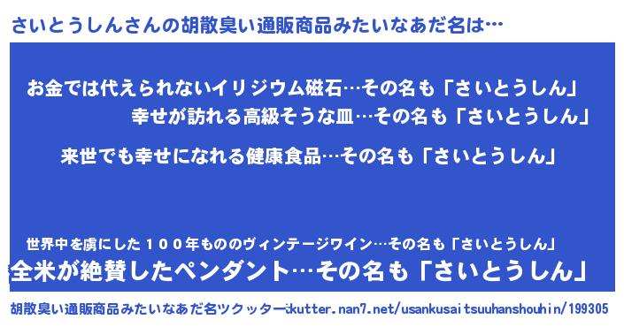 | ヘコむあだ名 | 『さいとうしん(爆)』『さいっ子』 |