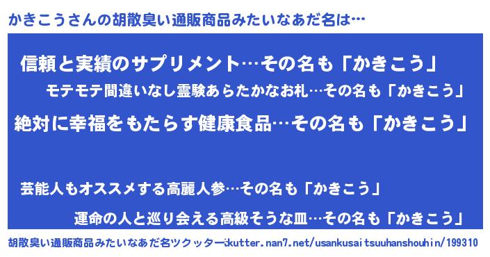 | ヒーロー風カッコイイあだ名 | 『ネオカキコウ』『黄金騎士カキ』 |