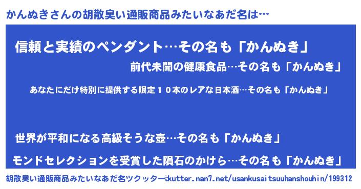 | 意味不明あだ名 | 『住所不定無職かんぬき(41歳)』 |