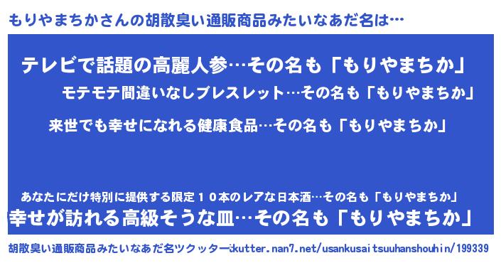 | 意味不明あだ名 | 『永久保存もりやまちか』 |