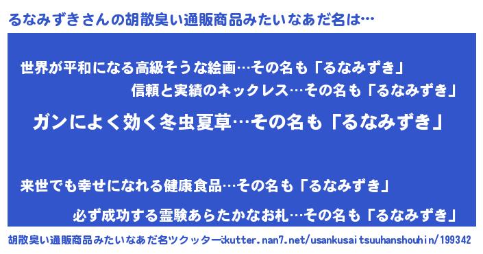 | 意味不明あだ名 | 『自称るなみずき』『ペロリンるなみずき』 |
