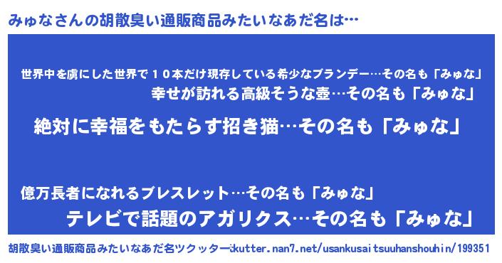 | 意味不明あだ名 | 『永久保存みゅな』『自称みゅな』 |