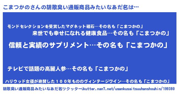 | 意味不明あだ名 | 『とにかく怪しいこまつかの』 |