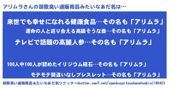 | ヘコむあだ名 | 『アリムラ(笑)』『アリにゅー』 |