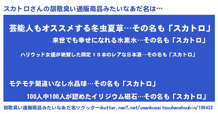 | 意味不明あだ名 | 『住所不定無職スカトロ(40歳)』 |