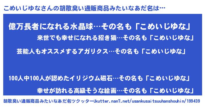 | 意味不明あだ名 | 『自称こめいじゆな』 |