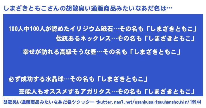 | 肩書あだ名 | 『しまざきともこ大統領』 |