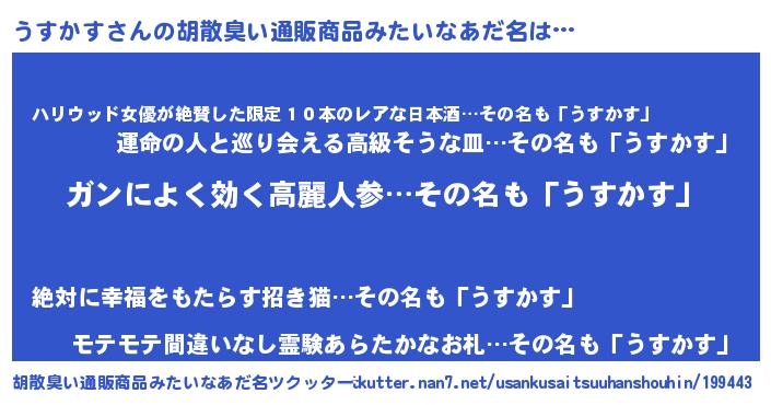 | 欧米人風あだ名 | 『アンジェラ・うすかす』 |