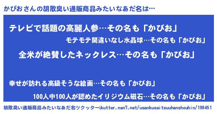 | 意味不明あだ名 | 『とにかく怪しいかびお』『自称かびお』 |