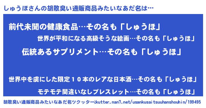 | ヘコむあだ名 | 『しゅお』『しゅうほ(笑)』『牛乳』 |