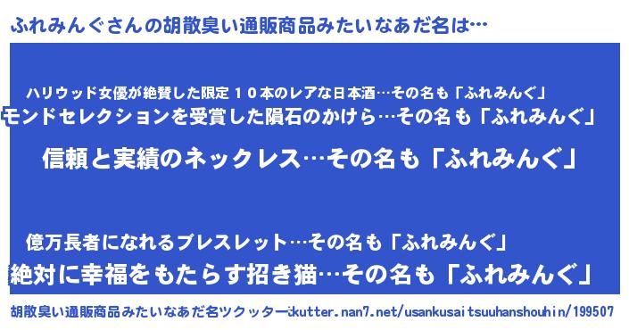 | ヘコむあだ名 | 『ふれっ子』『ふれみんぐ(笑)』 |