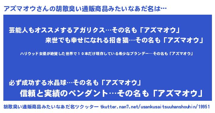 | ヘコむあだ名 | 『アズっちょ』『アズマオウ(震え声)』 |