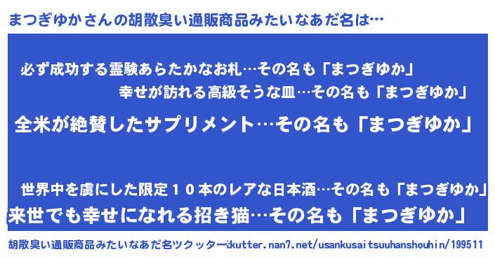 | 恥ずかしいあだ名 | 『マツリンリン』『プリティーまつぎゆか』 |