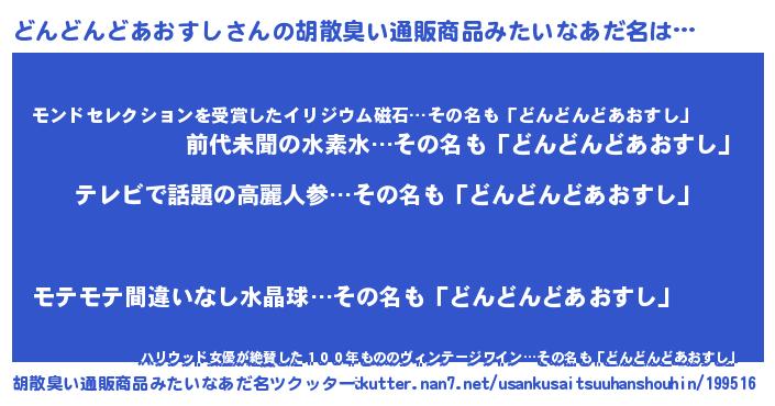| ヘコむあだ名 | 『どんどんどあおすし(笑)』『どんもー』 |