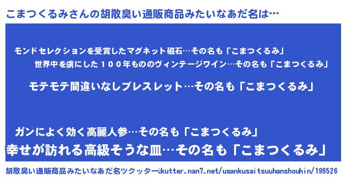 | ヒーロー風カッコイイあだ名 | 『スーパーコマツクルミ』『仮面コマダー』 |