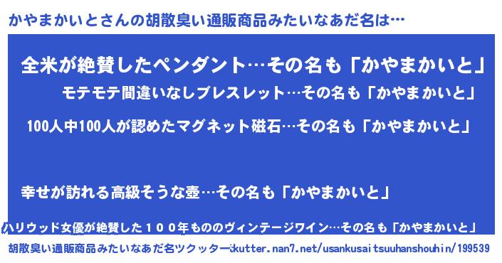 | ヘコむあだ名 | 『かやを』『かやもー』『酢こんぶ』 |