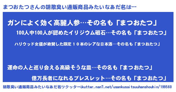 | 意味不明あだ名 | 『住所不定無職まつおたつ(39歳)』 |