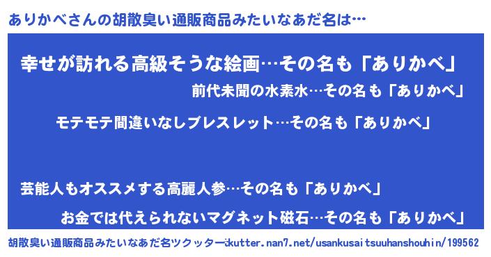 | ヘコむあだ名 | 『ありにー』『豆乳』『ありを』 |