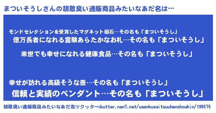 | ヘコむあだ名 | 『まついそうし(爆)』『まつお』 |