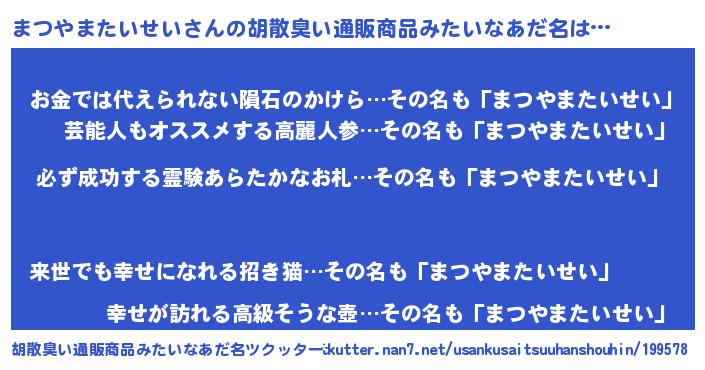 | 伝説のあだ名 | 『伝説のスナイパーまつやまたいせい』 |