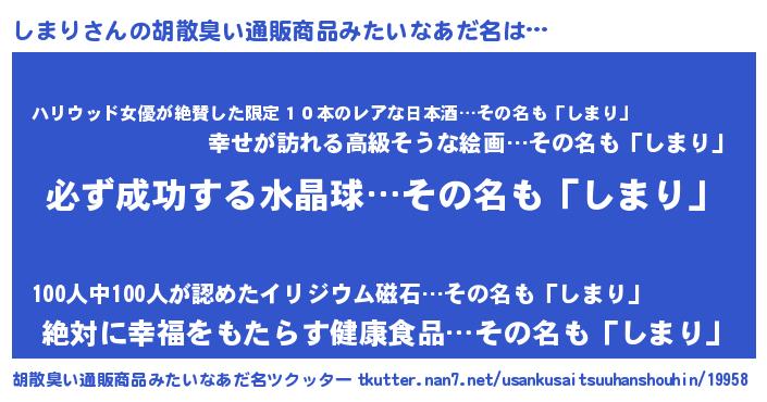 | ヘコむあだ名 | 『しまもー』『しまり(爆)』『つくし』 |
